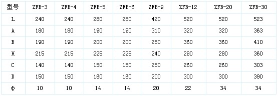 ZFB系列倉壁振動(dòng)器(防閉塞裝置)外形尺寸: